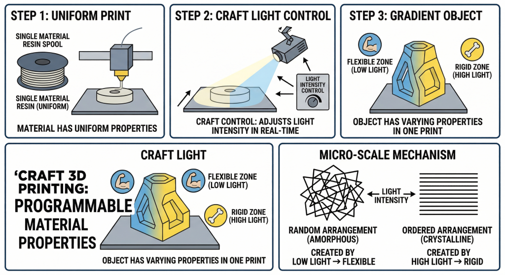 CRAFT changes this by manipulating the molecular structure of polymers in real time using light intensity.