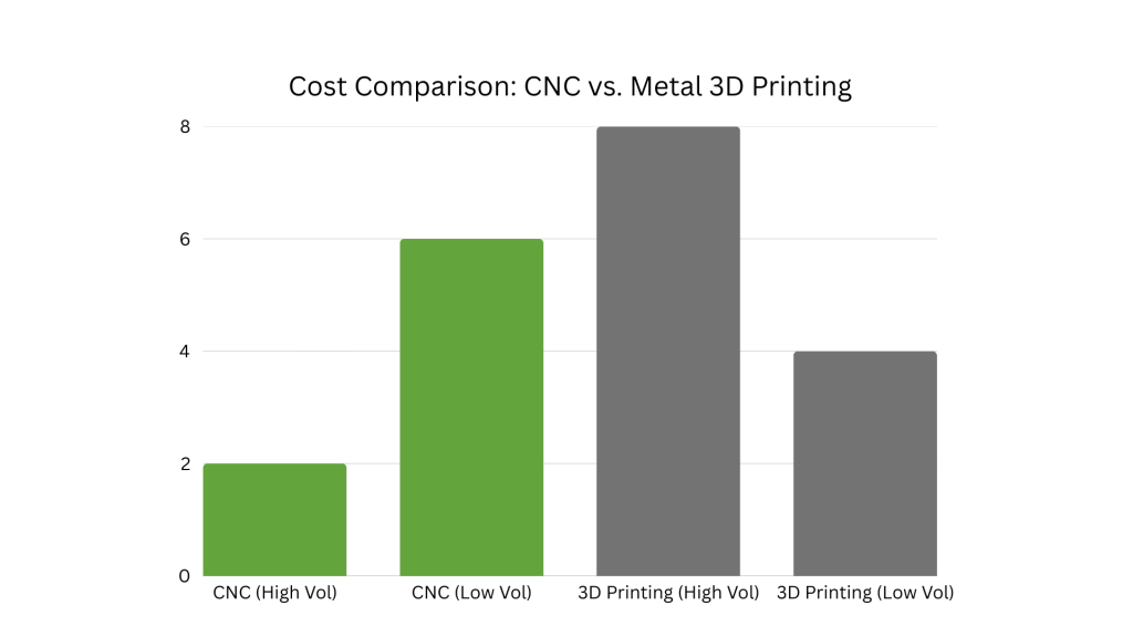 - 3D Printing: Higher initial investment, but cost-effective for low-volume or highly complex parts due to no tooling requirements.